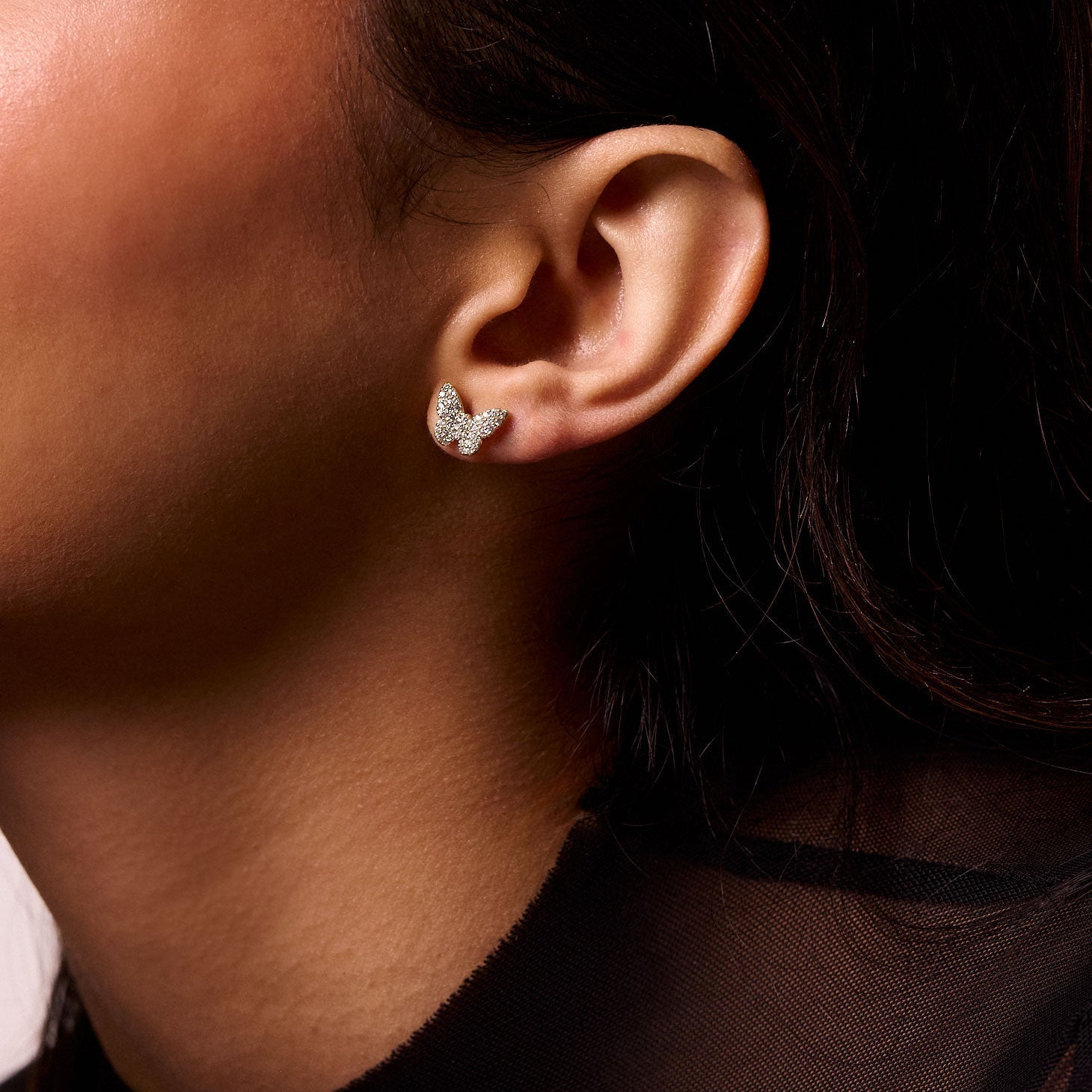 Destaca con estos elegantes pendientes de mariposa. El pavé de circonitas cúbicas cubre cada pendiente de ala a ala, aportando un brillo que llamará la atención. Combínalos con los aros Rainbow Caviar para un look de pendientes DIVOON.
