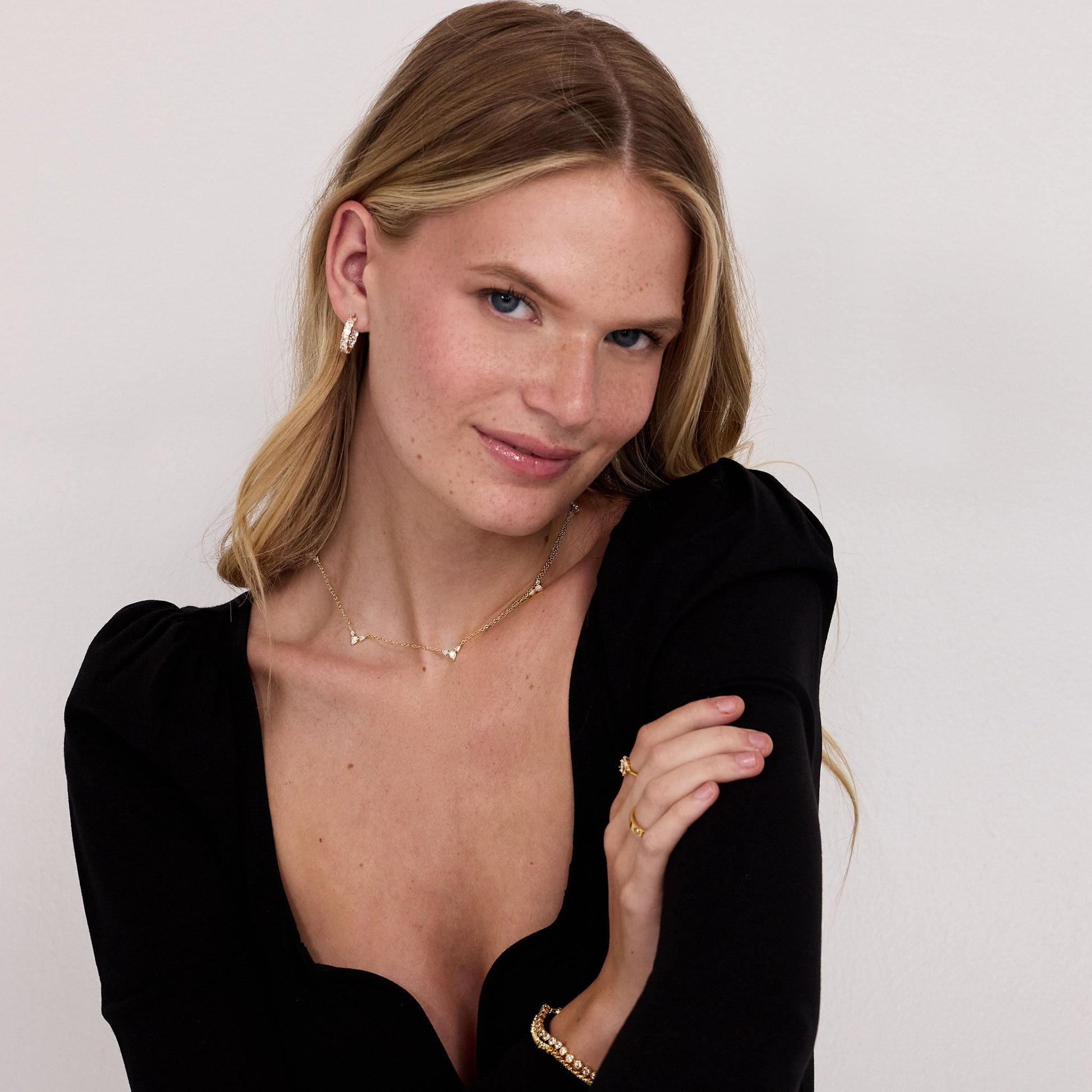 Get ready to shine and groove with Disco Hoops! These hoops are adorned with sparkling crystals, adding a touch of glamour to any outfit. Bring the party to your ears with these earrings.