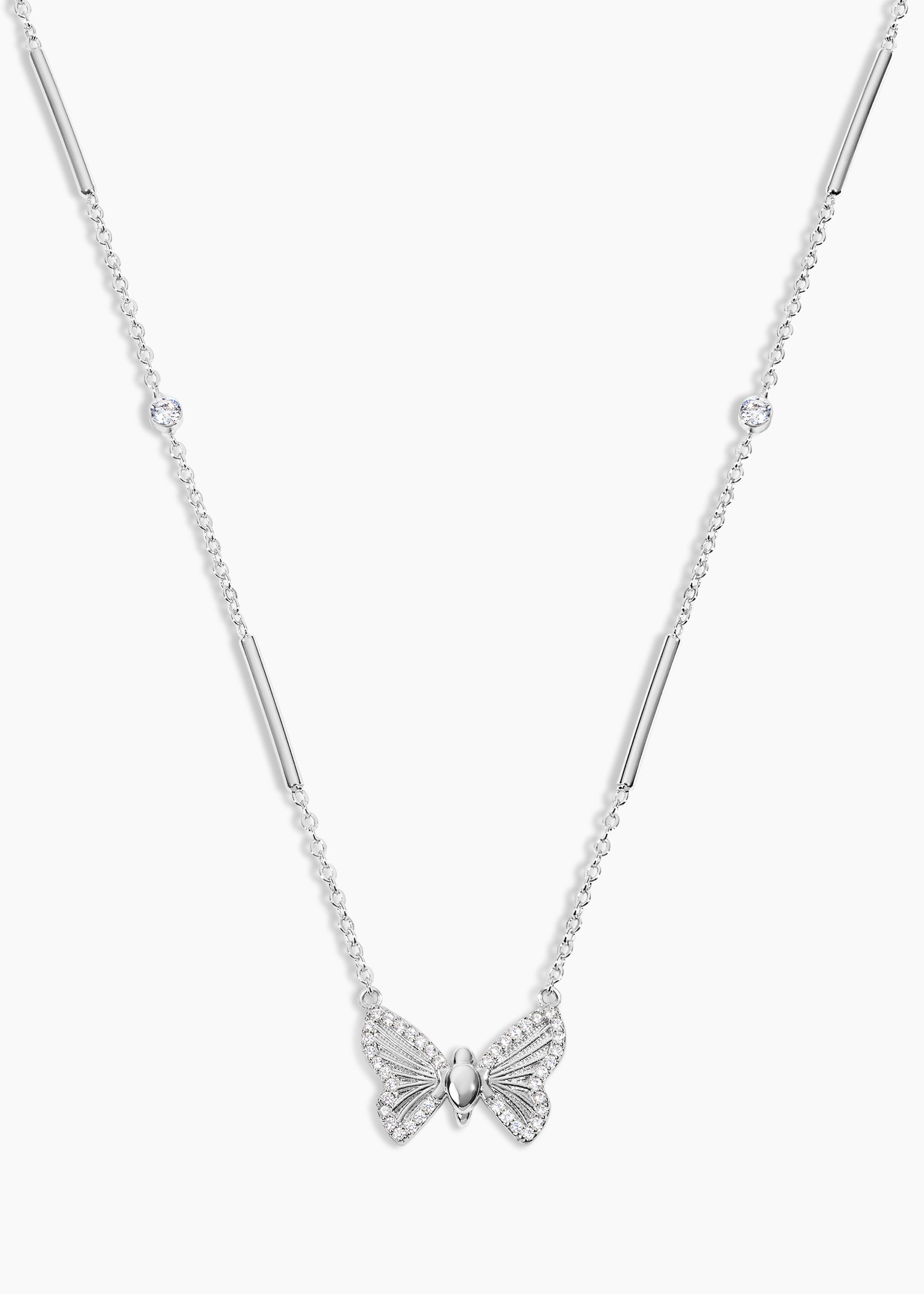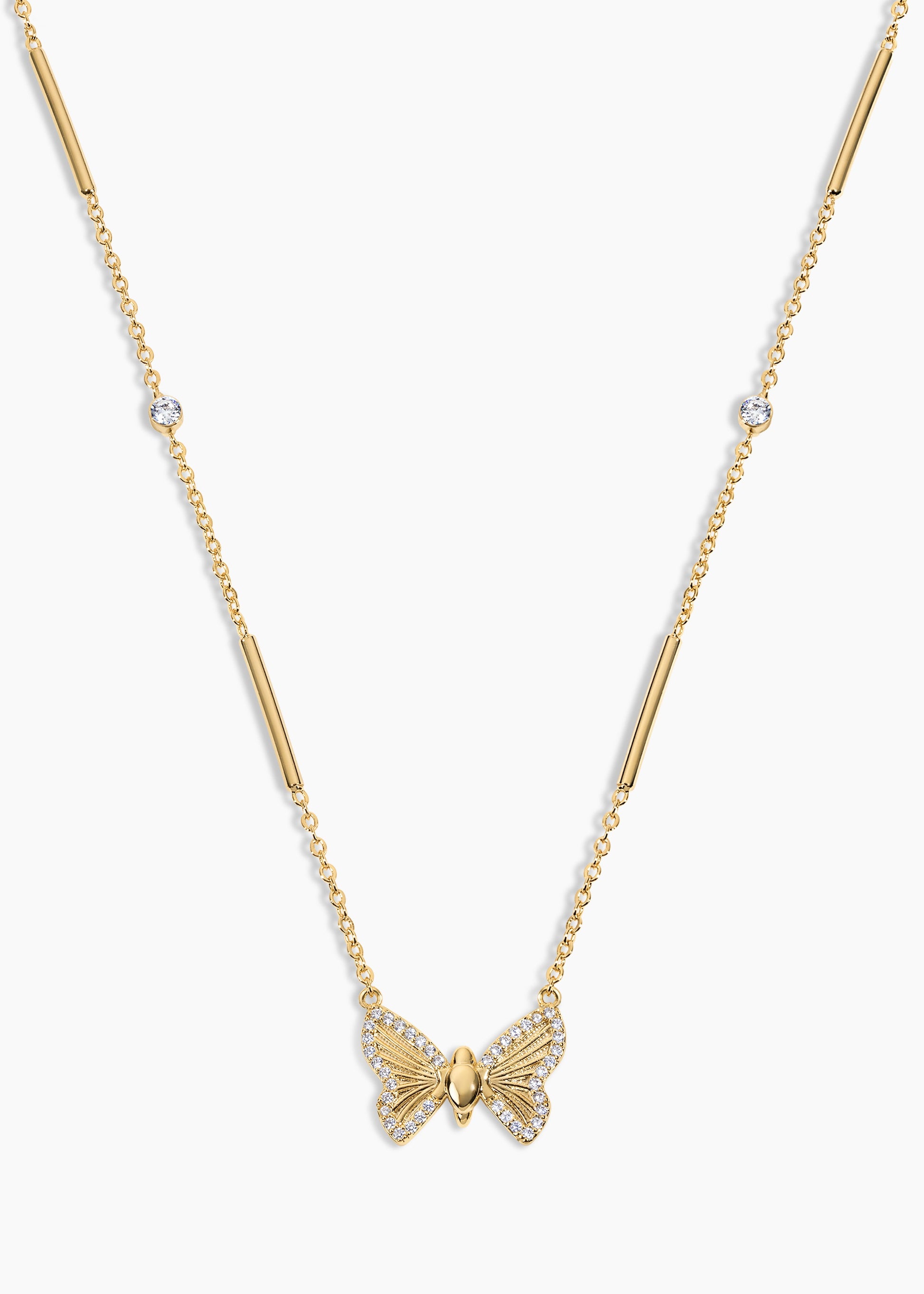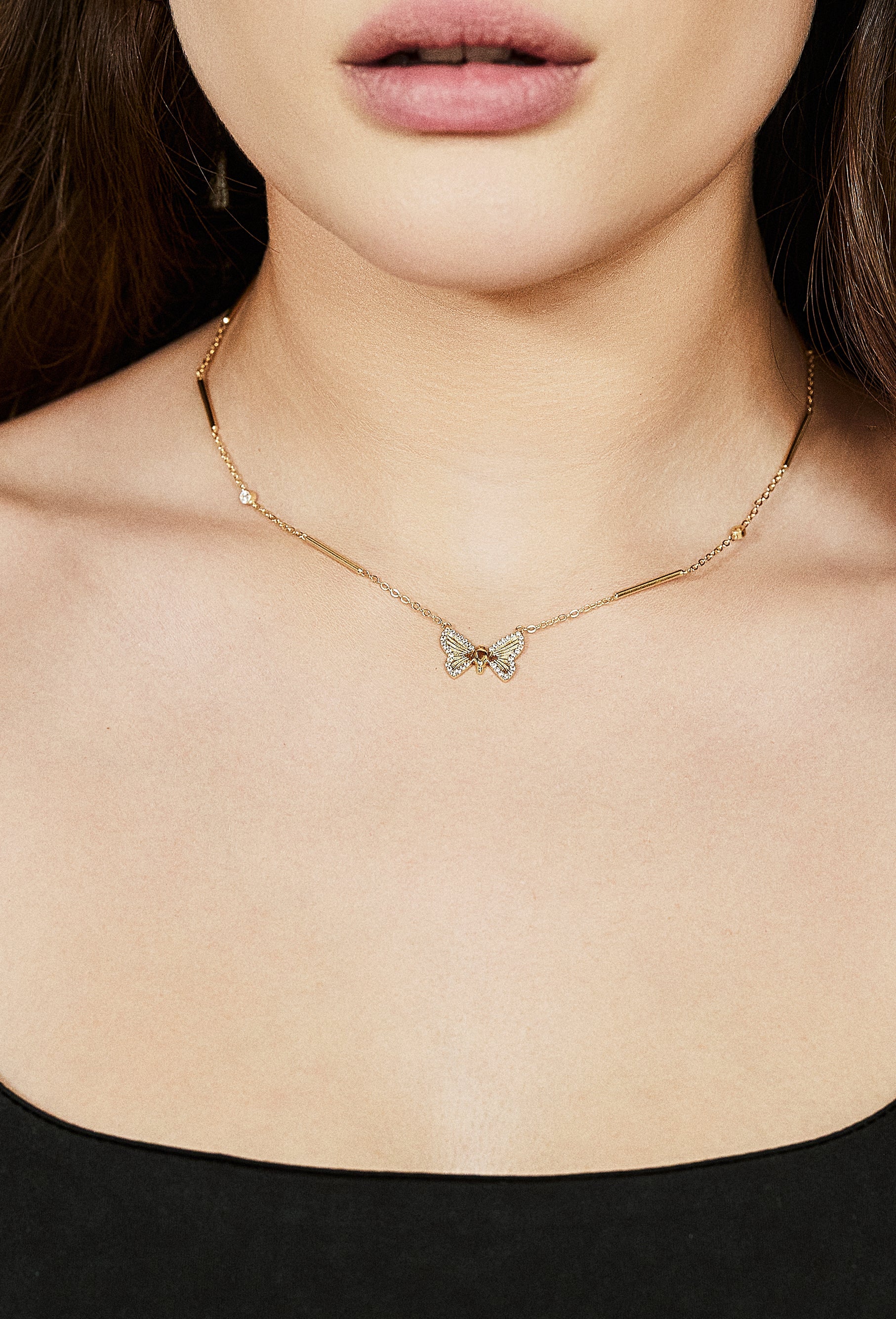 The perfect symbol of your free-spirit and grace. The Fly Away Necklace features a unique chain and feminine butterfly charm that stand out on their own or in a necklace stack.