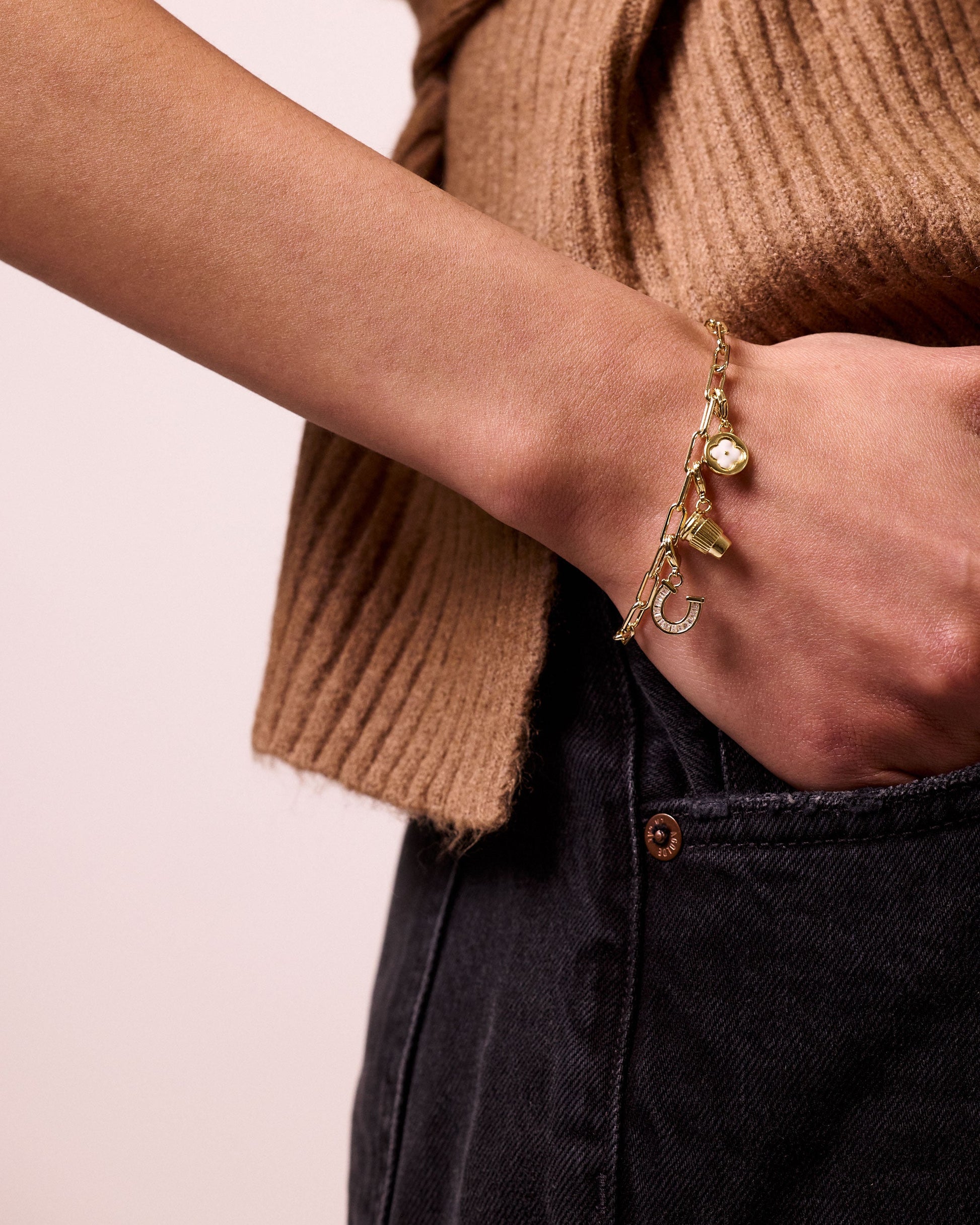 Saddle up, babe. This golden horseshoe charm brings sparkle and good luck.