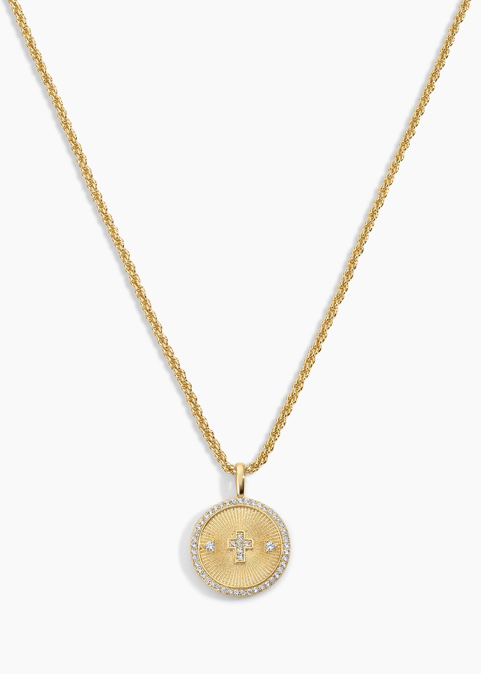 A pendant this stunning must be heaven-sent. A twisted rope chain & crystal-embellished cross medallion make our Guardian Necklace absolute perfection.