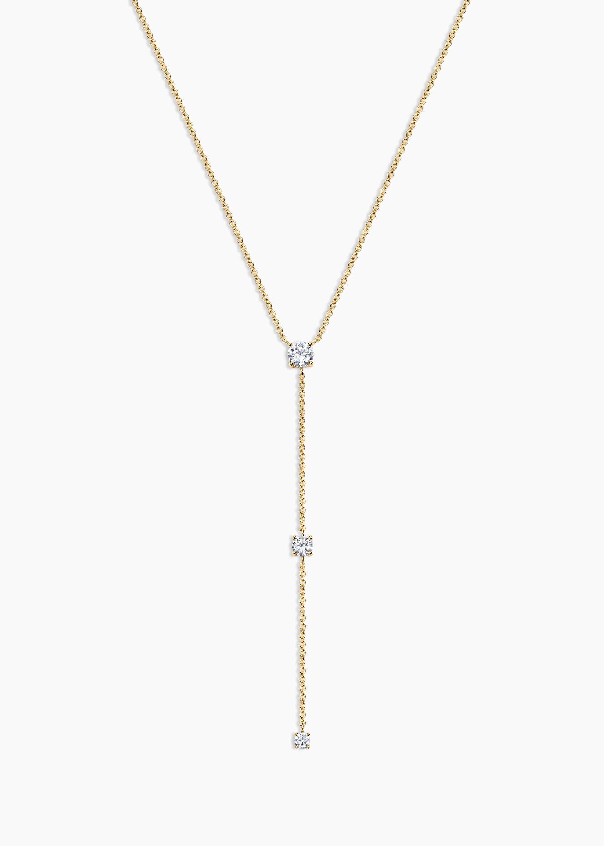 The Jade Lariat Necklace is sleek and flirty. Three stones drop down from a gold chain in a Y-shape that highlights your collarbones and elongates your look. It's the perfect add-on for tees, button-downs, or anything that needs a little extra sparkle.