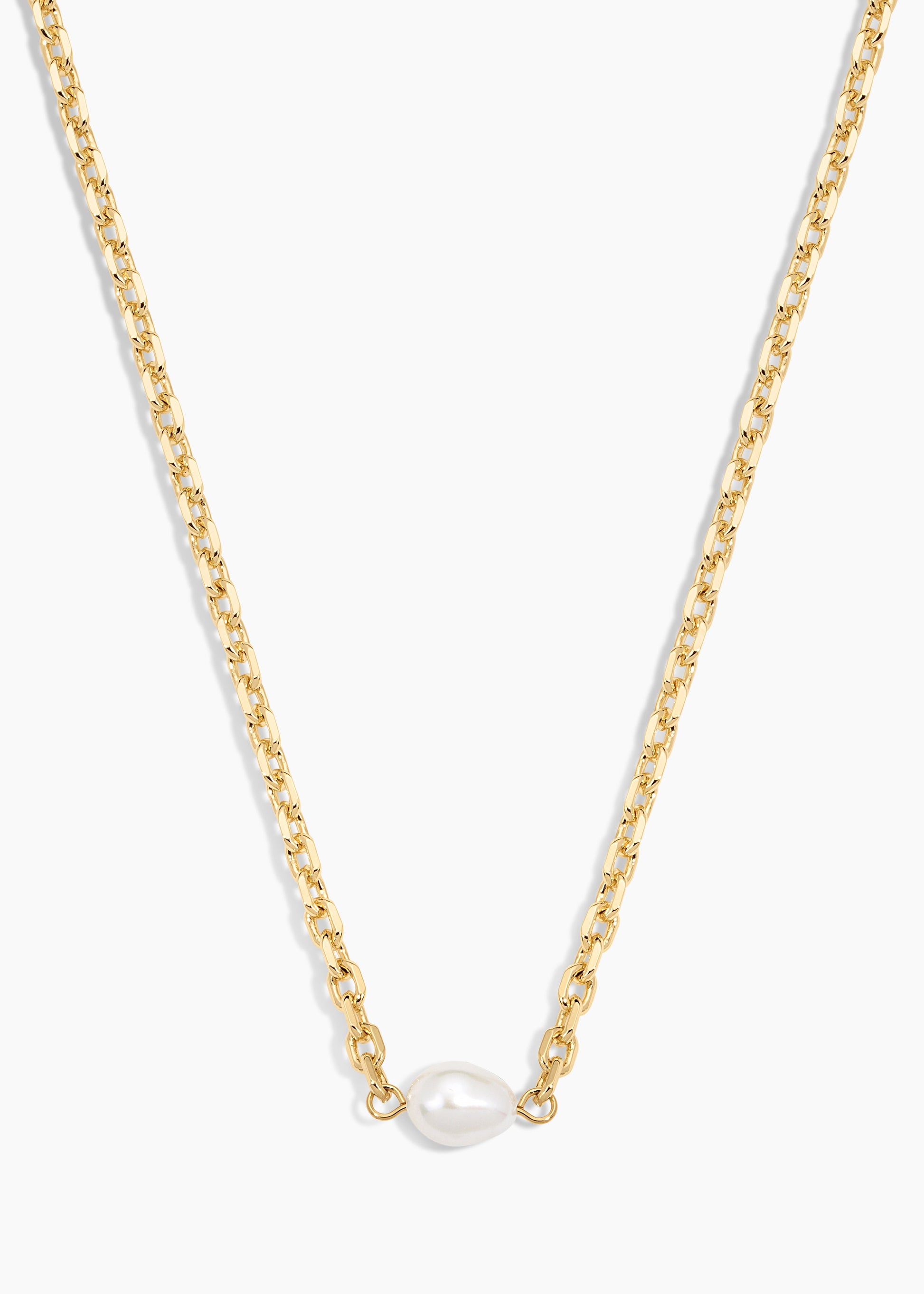 Take a piece of paradise with you everywhere you go. Featuring a classic gold link chain and centered pearl drop, this necklace is perfect for every day or your next getaway.