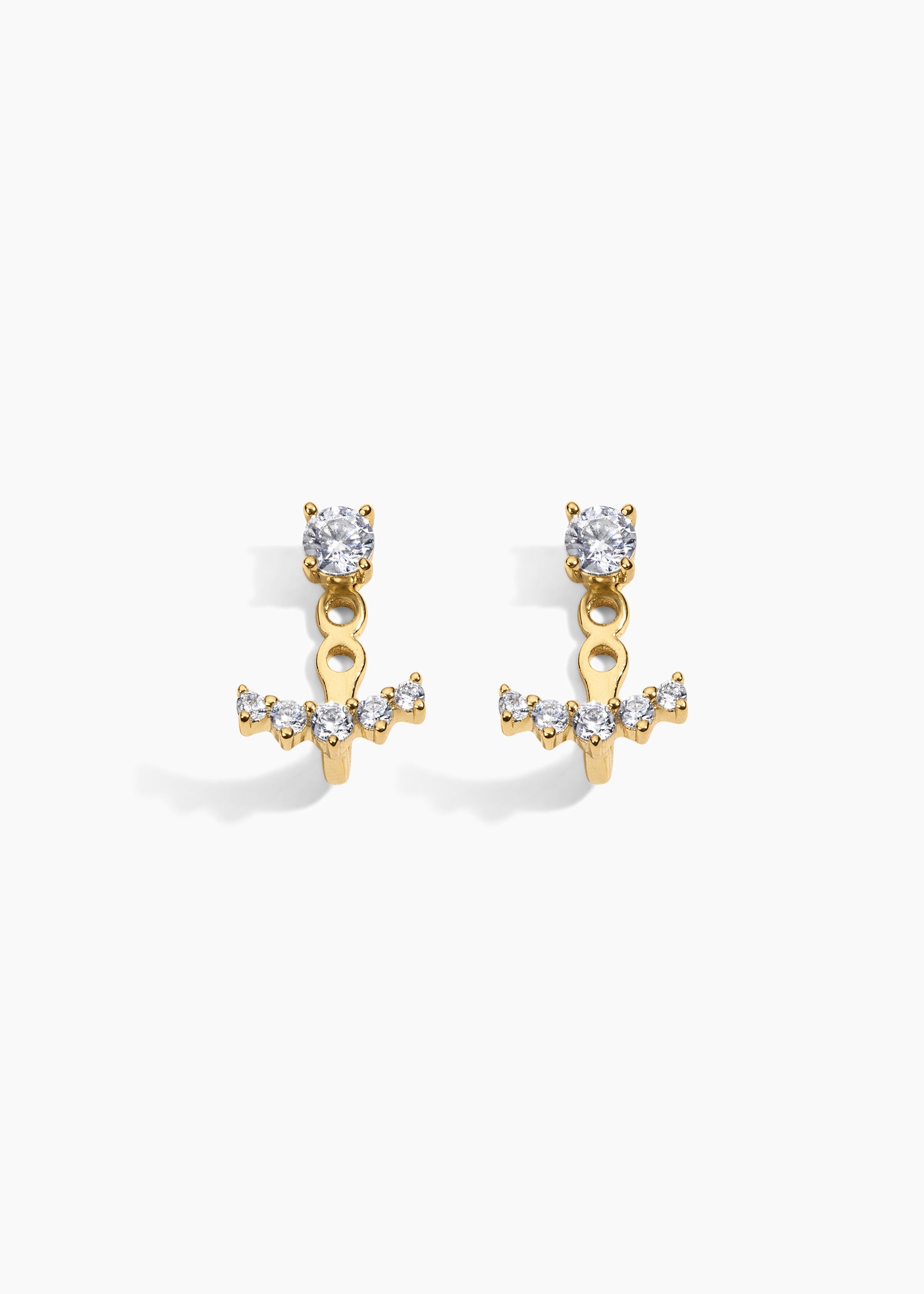 Add some sparkle to your ear stack with a solitaire CZ stud, paired with a pave frame that hugs your ear. We all love a good jacket- right?
