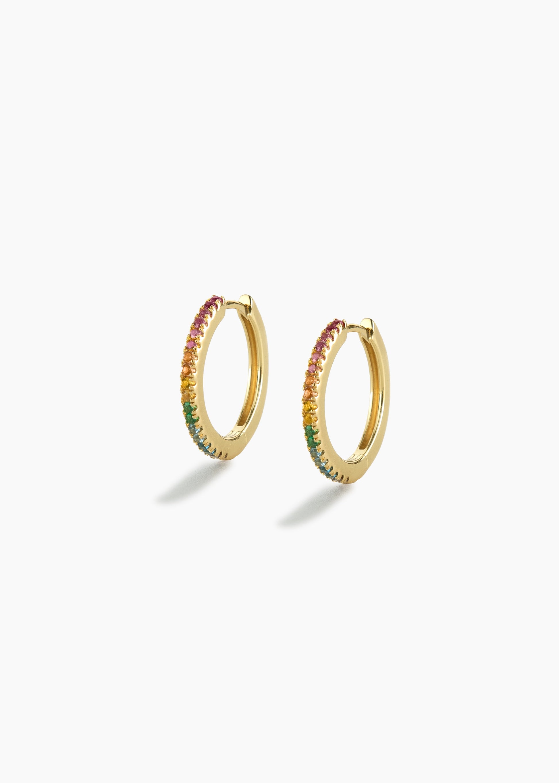Small hoops, big energy. Designed by Bethenny herself, these hoops feature ombré rainbow CZ stones that bring the color and the charm. Wear them solo for a playful pop or stack ’em with the Bryn Butterfly studs to take your earring game to icon status.