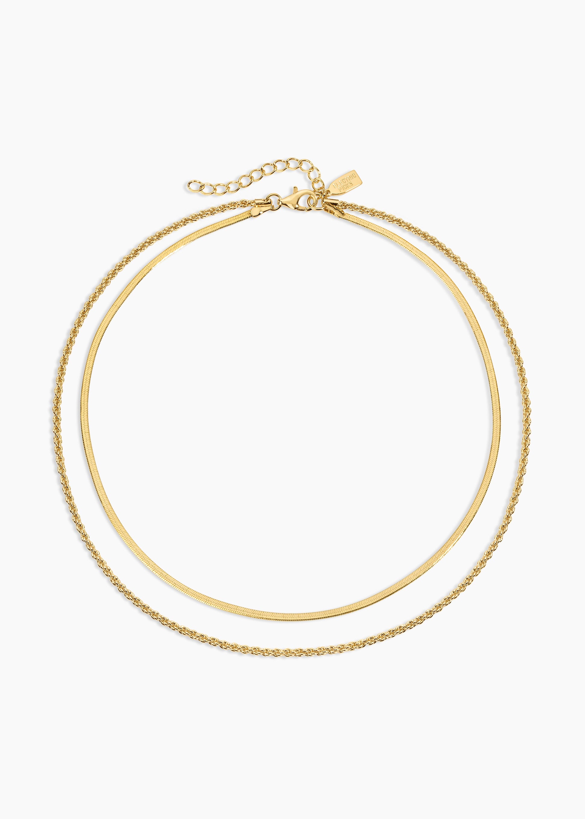 Two stylish chains, one necklace we can't get enough of and it's clear to see why. Easy to wear and even easier to love, these twisted rope and herringbone chains are the perfect foundation for a necklace stack look.